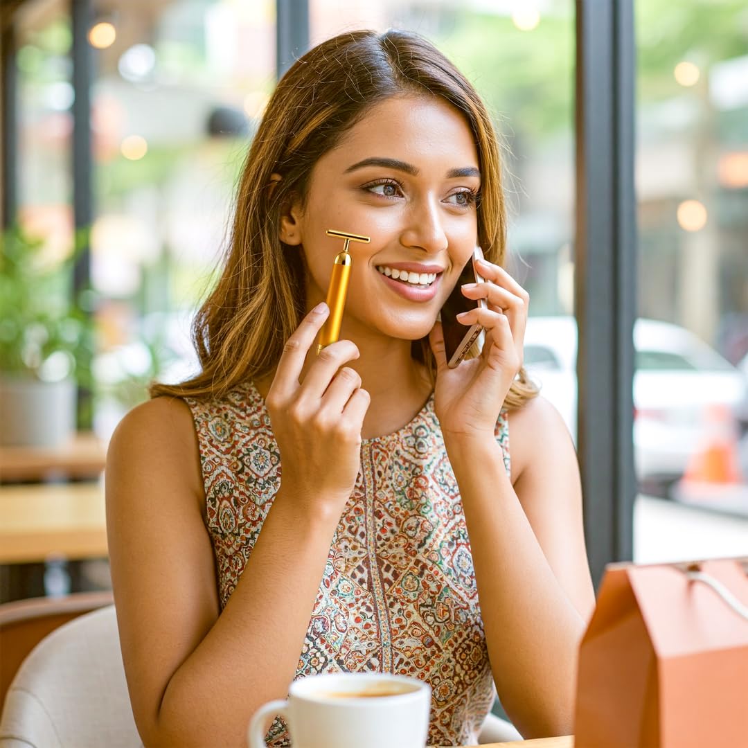 - 24K Gold-Plated T-Shaped Head: Anti-bacterial surface safe for all skin types.